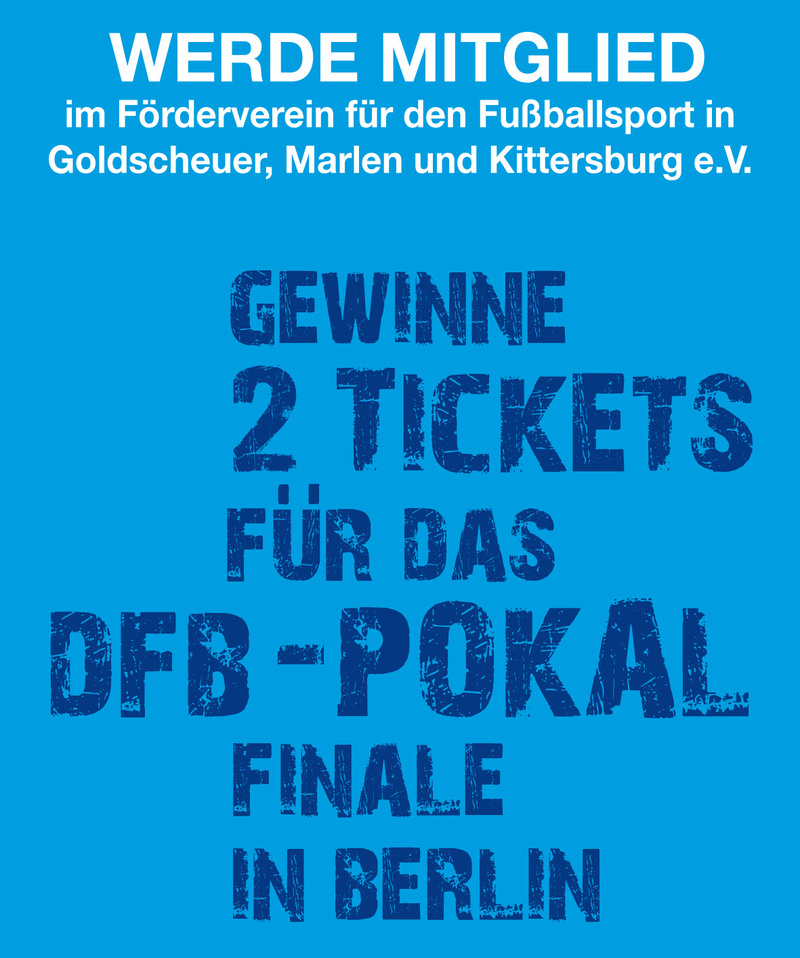 Unter allen neuen Mitgliedsanträgen die wir bis einschließlich 31.12.2014 für unsere gemeinsamen Ziele gewinnen können, verlosen wir zwei Eintrittskarten für das DFB-Pokal-Finale der Herren am 30. Mai 2015 in Berlin.
